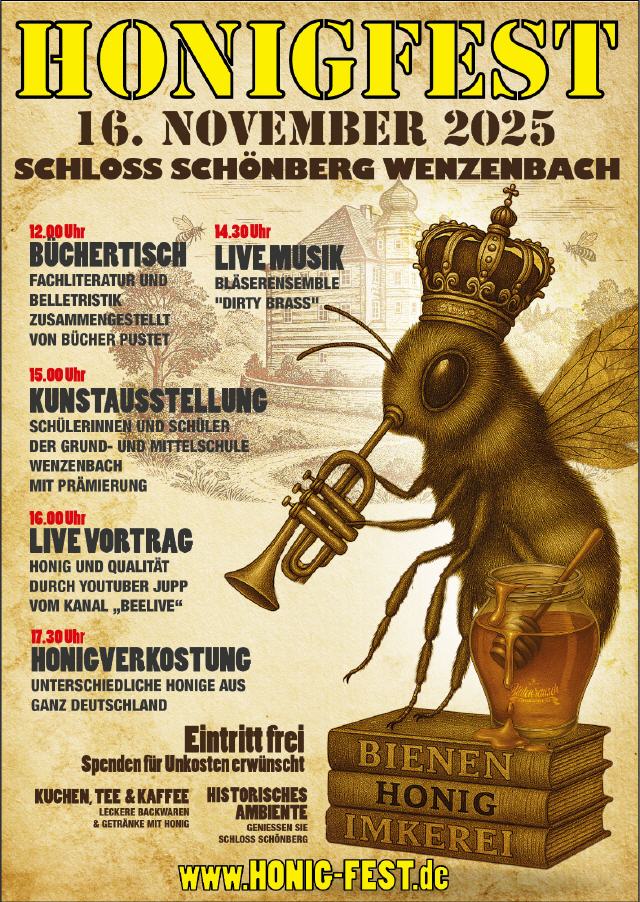 Am Sonntag, den 16. November 2025 findet zum ersten Mal ein HONIGFEST im Wenzenbacher Schloss statt.